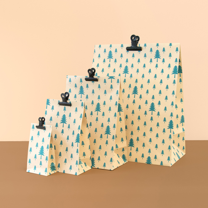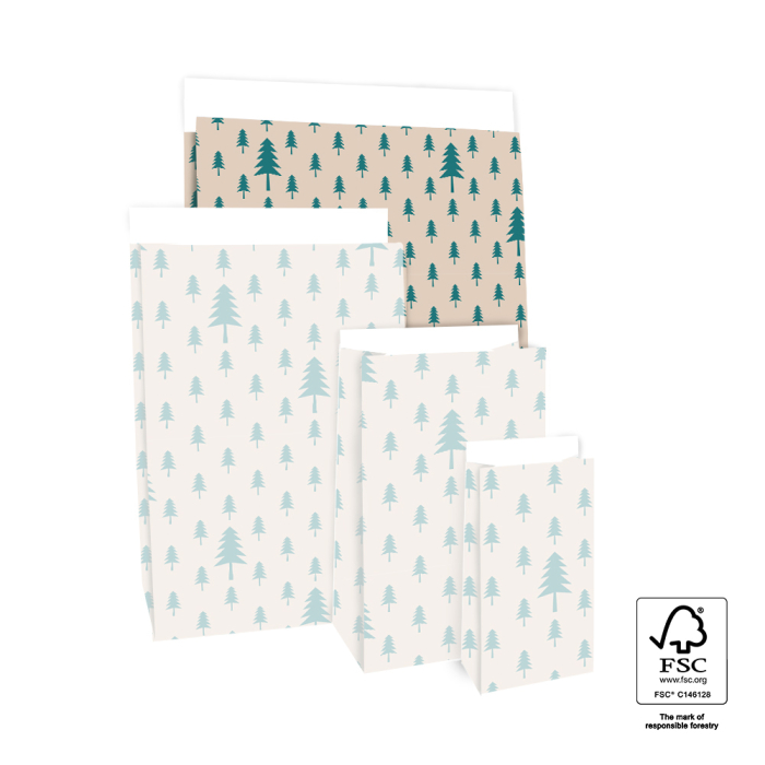 Met de X-mas blokbodemzakken Trees Beige/Jade Green geef je elk cadeau een natuurlijke en feestelijke uitstraling — perfect te combineren met goudkleurig lint of sluitstickers voor een complete kerstpresentatie.