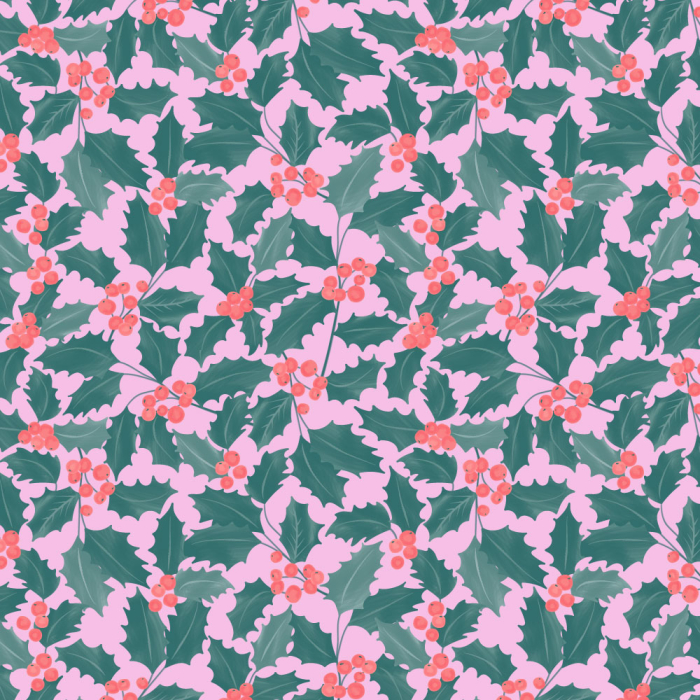Dessin: Holly Leaves (hulstblaadjes en rode bessen)