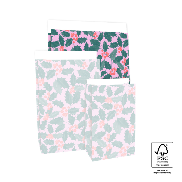 X-mas Blokbodemzakken – Holly Leaves
