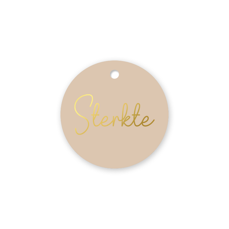 Cadeaulabel rond “Sterkte” met luxe goudfolie – Ø60 mm