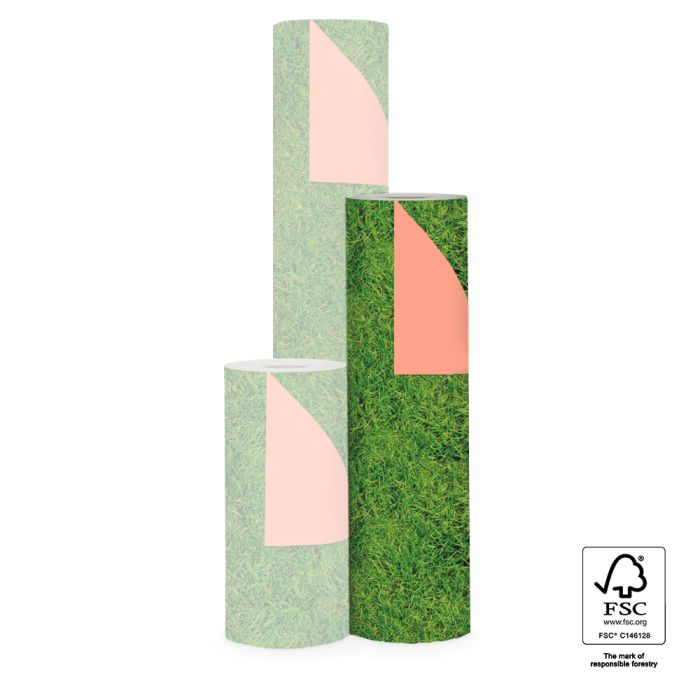 Het inpakpapier Grass Salmon heeft een fris en speels gras motief, waardoor het perfect is voor sportieve cadeaus. De zachte zalmkleur gecombineerd met het grafische grasdessin geeft het papier een moderne en verrassende uitstraling. Ideaal voor voetbalfans, sportliefhebbers en vrolijke momenten.