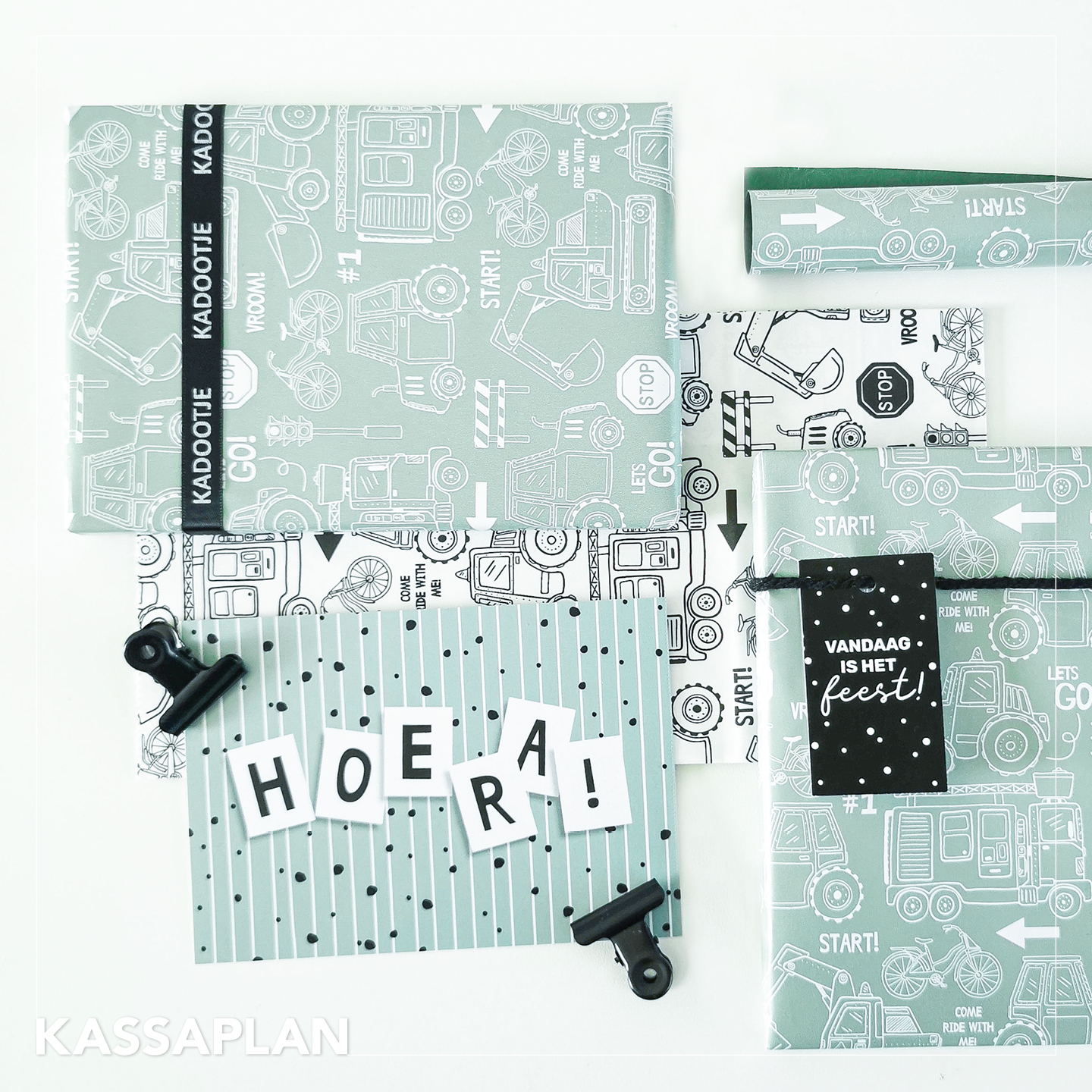 Met het voertuigen inpakpapier “Come Ride With Me” maak je van ieder cadeau een stoere verrassing voor kinderen die gek zijn op tractoren, graafmachines en brandweerauto’s.